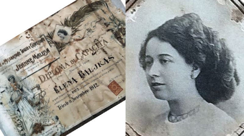 Elena je, kako se naglašava, napredni tečaj krojenja i šivanja završila s pohvalama, a istaknula se marljivošću i izvrsnim rezultatima. Direktorica Škole krojenja i šivanja u Trstu bila je Jeanne Malusa za koju se navodi da je 1903. godine diplomirala krojenje i šivanje na Akademiji Pariz u Parizu.