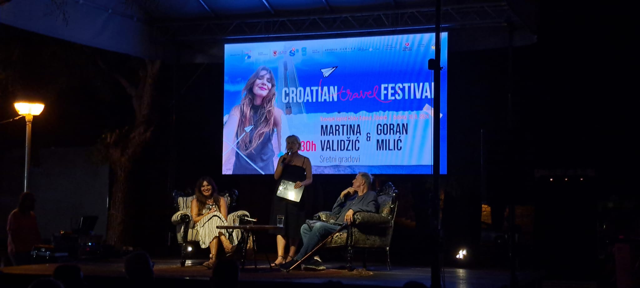 Gledalište na travnjaku ispred Azimuta, podno šibenske katedrale bilo je prepuno i večeras, 3.dana Hrvatskog festivala putnika Šibenik. Martina Validžić, poznata reporterka HTV -a u razgovoru s veteranom putopisa i reportaže, TV novinarom Goranom Milićem, svojim starijim kolegom pričala je o sretnim gradovima kako se i zove njezin serijal koji je prikazan na HTV -u.