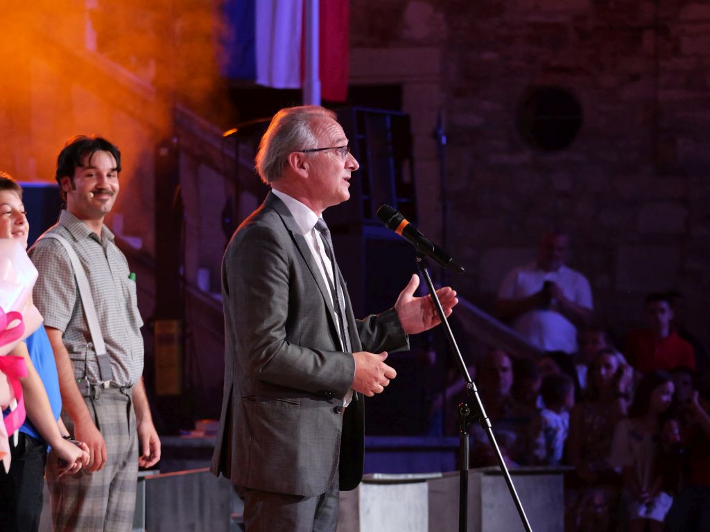 Na svečanom otvaranju govorili su, uime pokrovitelja Festivala Ureda Predsjednika Republike Hrvatske i predsjednika Zorana Milanovića, poseban savjetnik za kulturu gospodin Zdravko Zima, potom izaslanik ministrice Nine Obuljen Koržinek u njezino i uime Ministarstva kulture i medija, Ivica Poljičak te, kao domaćin, gradonačelnik Šibenika gospodin Željko Burić, a sve je uživo prenosila Hrvatska radiotelevizija.