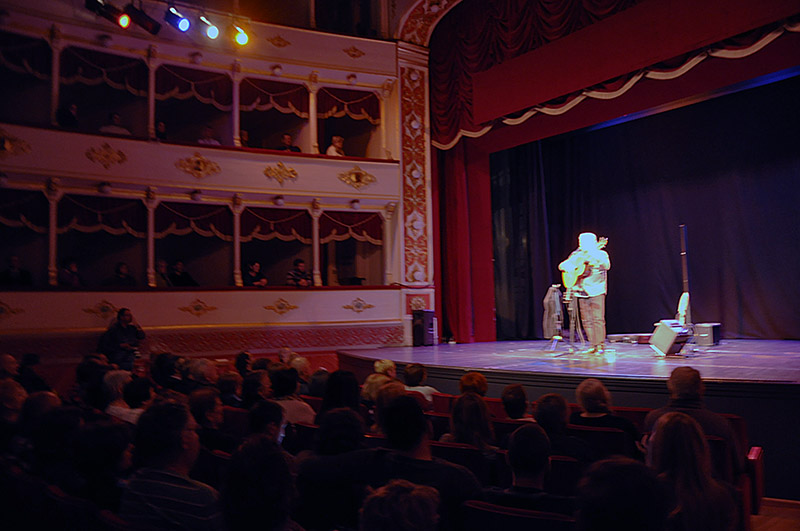 Publika je uživala u svakom taktu Ibričinih velikih uspješnica kao i obradama drugih pjesama u njegovom specifičnom stilu. Ibrica je svirao i pjevao, a njegov vjerni pratitelj Bond je samo ležao i mirno slušao, uostalom kao i svi u kazalištu. Kad su došle na red "Ljubi san vašu kći", "U svakom slučaju te volim" ili "Pismo Čali" Vice Vukova, i publika se uključila kao prateći zbor i dovela atmosferu do vrhunca.