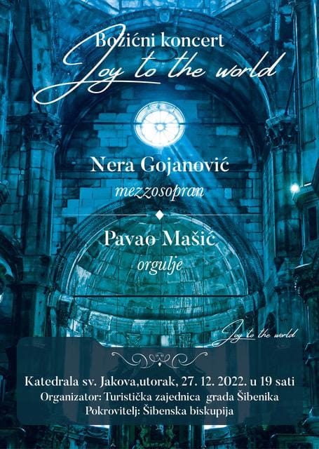 Poznata mezzosopranistica Nera Gojanović i orguljaš Pavao Mašić već gotovo dva desetljeća svojim tradicionalnim Božićnim koncertom obogaćuju kulturni život Šibenika. Večeras će u šibenskoj katedrali održati koncert “Joy to the World” koji će početi u 19 sati. Na programu su djela iz Božićnog oratorija C.Saint-Saënsa, J. S. Bacha, tradicionalne hrvatske božićne pjesme, skladbe P. Tostija, W.A. Mozarta, G.F. Händela.