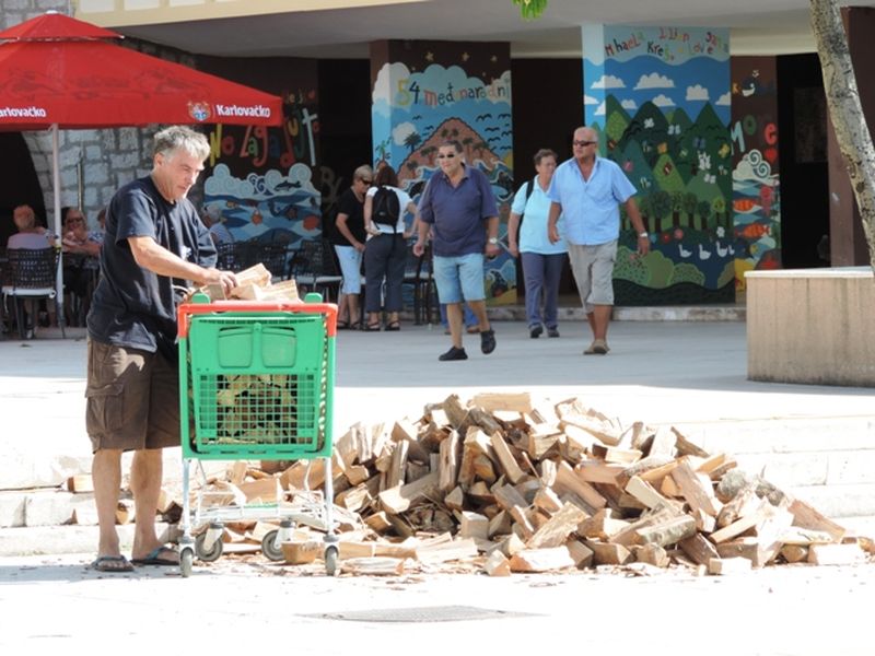 Dok se zgodna polugola strankinja pokušava ohladiti sladoledom koji se prebrzo topi, u isto vrijeme nasuprot nje, vrijedni sugrađanin priprema ogrjev za hladnu zimu. U galeriji pogledajte dva lica današnje šibenske rive.