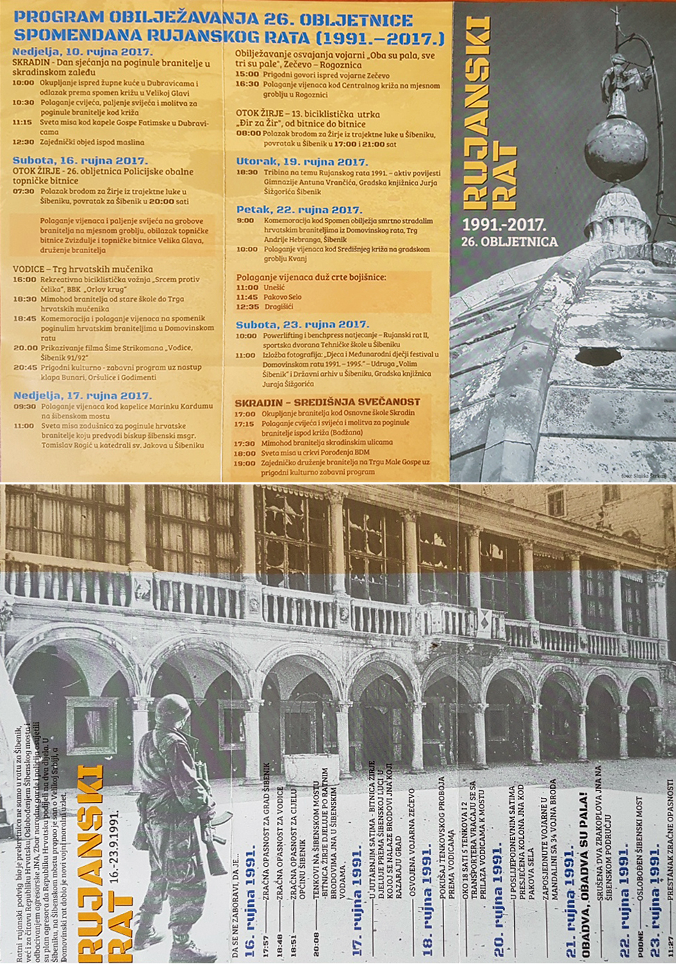 Obilježavanje 26. obljetnice rujanskog rata počinje već 10. rujna u zaleđu Skradina, u Dubravicama i Velikoj Glavi, a završava 23. rujna na središnjoj svečanosti čiji je domaćin ove godine Grad Skradin.