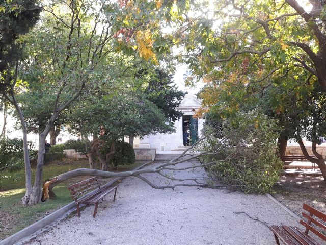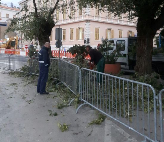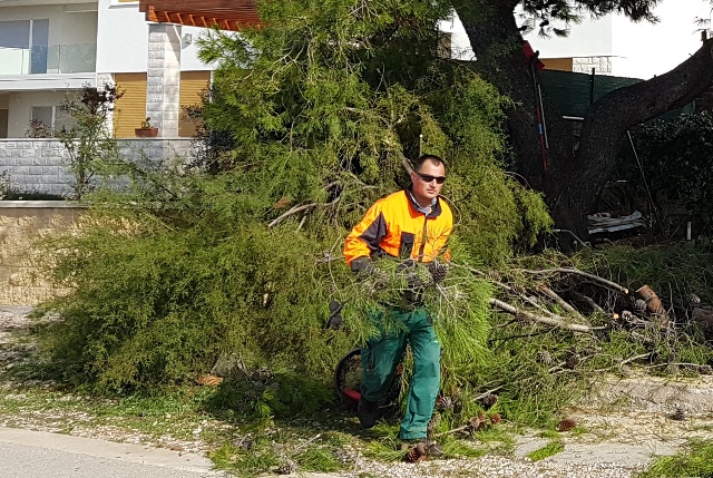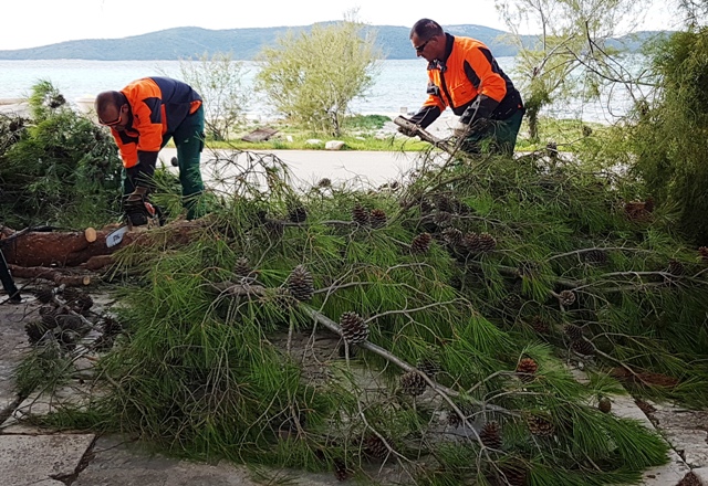 Olujna bura nosi danas u Šibeniku sve pred sobom, a najviše je posla zadala radnicima „Zelenila“ koji ne staju od jutros uklanjati slomljene grane i iščupana stabla s javnih površina. Kako pokazuju i naše fotografije, prava je sreća da od tih polomljenih grana nitko nije ozlijeđen. Bilo ih je i u središtu Šibenika i na Šubićevcu i na Brodarici. Nije danas bilo lano ni prodavačima i prodavačima na šibenskoj pijaci koji su s morali sklanjati od jakog vjetra , a bura je poderala i incerade koje ih štite od kiše.