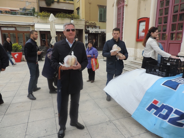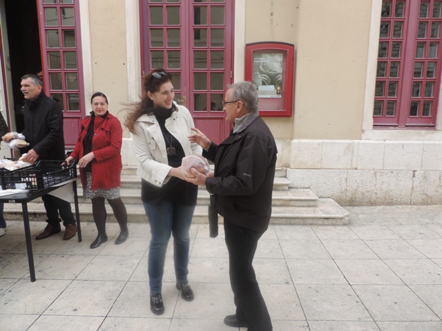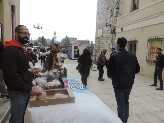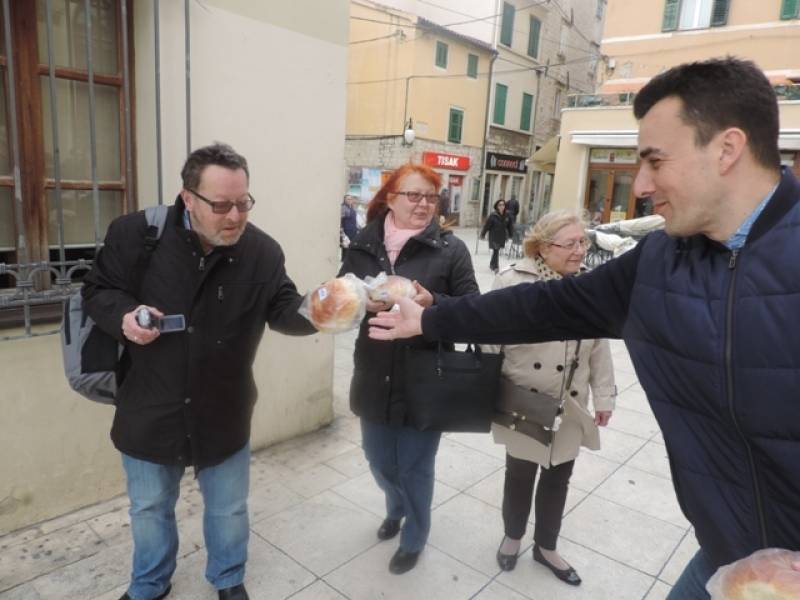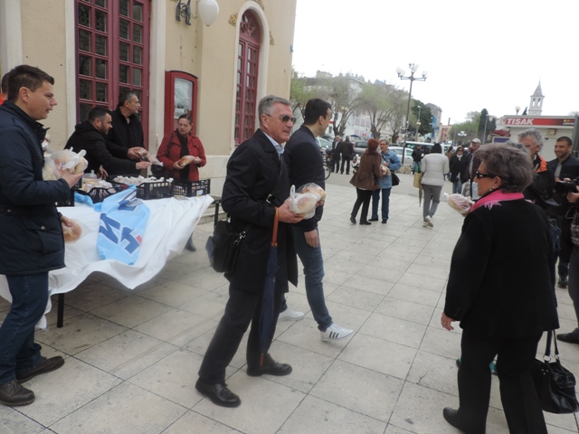 Zajednica žena Katarina Zrinska i Mladež HDZ –a osigurali su 1 200 uskrsnih pogača koje su poklanjali građanima diljem Šibensko – kninske županije. U Šibeniku su pogače dijelili prolaznicima ispred zgrade HNK Šibenik,a pomagali su im i čelni ljudi Grada Šibenika – gradonačelnik Željko Burić i oba njegova zamjenika Paško Rakić i Danijel Mileta te nediljko Duji, predsjednik Županijskog odbora HDZ -a. Taj uskrsni dar rado su primali u turisti.