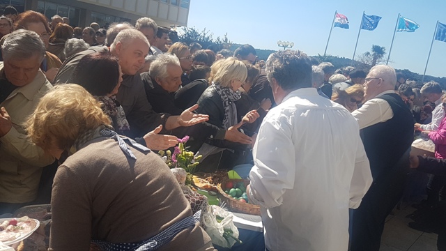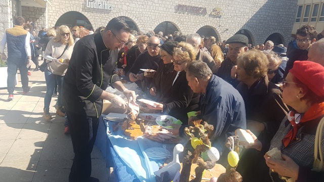 Veselo je, ali istodobno i tužno bila na jutrošnjem Uskrsnom doručku na trgu ispred Zgrade Šibensko – kninske županije koji Šibenčanima i gostima Šibenika već tradicionalno daruju Udruženje obrtnika Šibenik i Turistička zajednica Grada Šibenika.