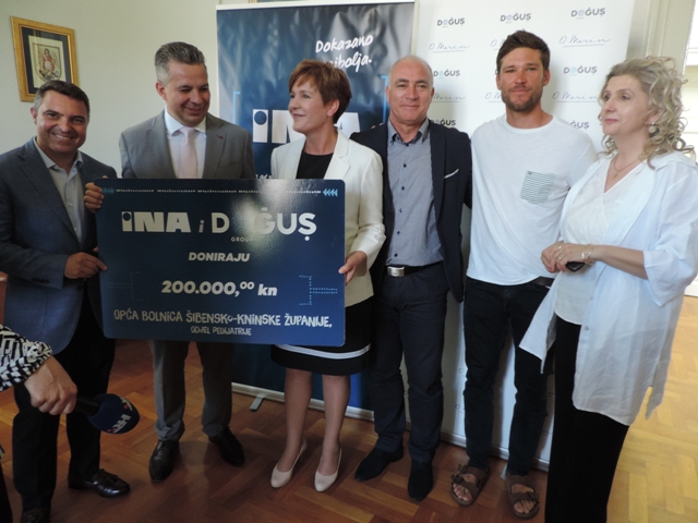 Donaciju od 200.000 kuna za nabavu gastroskopa da ambulantu na Odjelu pedijatrije šibenske bolnice uručili su utorak ravnateljici Opće bolnice Šibensko-kninske županije Sanji Jakelić predsjednik Uprave Ine Zoltán Áldott i Burak Baykan, regionalni direktor turske Doğuş grupe, a nazočan je bio i proslavljeni hrvatski jedriličar Šime Fantela jer je upravo jedriličarska regata TP 52, koja je danas počela u D-Marin u Mandalini, izravni povod za dodjelu te donacije.