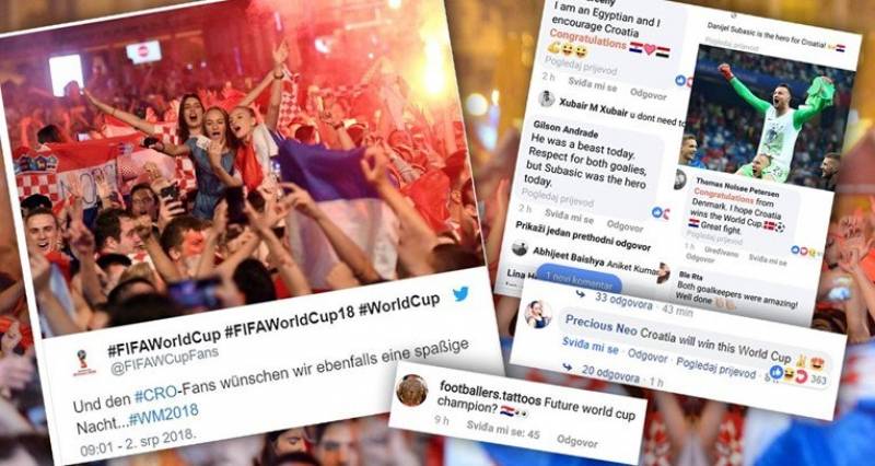 "Hrvatska će osvojiti Svjetsko prvenstvo", "Hrvatska igra najbolji nogomet u Rusiji", "Čestitke iz Danske. Hrvatska će osvojiti Svjetsko prvenstvo, sjajna borba", samo su neki od tisuće pozitivnih komentara na račun hrvatske nogometne reprezentacije.