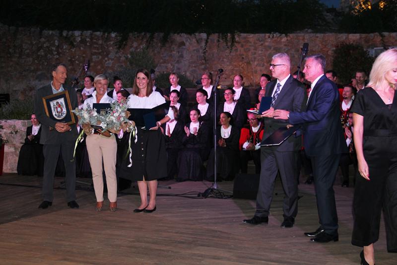 Na sinoćnjoj Svečanoj sjednici potom su uručene nagrade i priznanja ovogodišnjim laureatima. Grb Grada Šibenika dodijeljen je Marijani Borić, za sveobuhvatna postignuća u istraživanju i afirmaciji šibenske znanstvene baštine i popularizaciji prirodoznanstvenog doprinosa grada Šibenika u zemlji i inozemstvu. Ivana Guberina dobitnica je Plakete Grada Šibenika za dugogodišnji pedagoški rad i postignuća u promicanju stvaralaštva za djecu. Udruzi turističkih vodiča “Mihovil“ Šibenik dodjeljena je Plaketa Grada Šibenika za postignuća u promicanju kulturnopovijesnog turizma i Šibenika kao posebne turističke destinacije. Klapi „Jadrija“ Šibenik se dodjeljena je Plaketa Grada Šibenika povodom 45. obljetnice djelovanja, za iznimna postignuća u klapskom pjevanju i promicanju šibenske glazbene tradicije.Šibenskoj biskupiji Nagrada Grada Šibenika dodjeljena je za realizaciju projekta Civitas sacra – Sveti grad i valorizaciju kulturne baštine katedrale sv. Jakova i palače Galbiani. Šibensko pjevačko društvo „Kolo“ ostvarilo je Nagradu Grada Šibenika u povodu 120. obljetnice djelovanja, za iznimna postignuća u afirmaciji i očuvanju hrvatske zborske glazbe.Jedriličarski klub „Val“ Šibenik dobitnik je Nagrade Grada Šibenika za dugogodišnja iznimna postignuća u sportu i organizaciju Svjetskog prvenstva u jedrenju po ORC-u.Ante Barbača dobitnik je Nagrade za životno djelo Grada Šibenika za dugogodišnji izniman doprinos razvoju i promicanju klapskog pjevanja i očuvanju nematerijalne kulturne baštine.