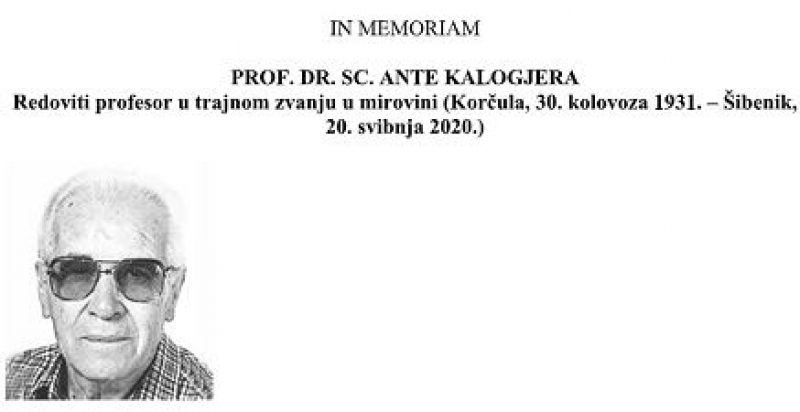 Preminuo je u 88. godini poznati sveučilišno profesor dr. Ante Kalođjera u svom stanu u Šibeniku u kojem je, unatoč svojoj zavidnoj karijeri sveučilišnog profesora najduže živio. Šibernčani znaju da je gotovo do kraja svog života bio vitalan i da je svakodnevno odlazio na ritualnu kavu u središte grada.