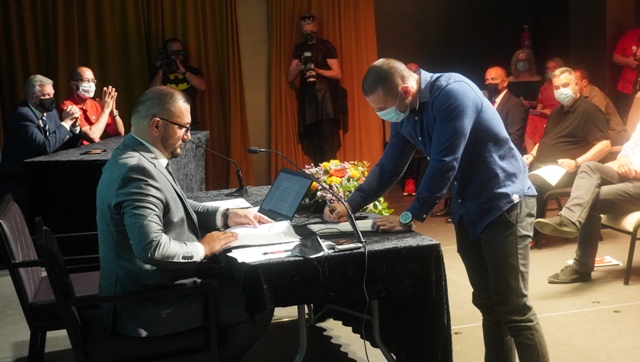 Gradsko vijeće Grada Šibenika konstituirano je danas, a sjednica koja je trajala tri sata samo je dijelom bila svečana, dok je veći dio protekao u oštroj polemici u prvom redu Suvereniste Hrvoja Zekanovića, potpomognutim gradonačelnikom Šibenika Željkom Burićem i oporbenih vijećnika SDP-a, NP Stipe Petrine i Koalicije MOST -a i Domovinskog pokreta. Oporba je bila protiv toga da im se važna Odluka o raspisivanju međunarodnog javnog poziva za iskazivanje interesa za ulaganje u projekt Batižele, na prijedlog trećine vijećnika i to iz vladajuće većine, servira na sjednici tražeći od njih da za nju odmah glasaju jer je to, kako je Zekanović bezbroj puta, ponovio od povijesne važnosti za Šibenik,a projekt je i nazvan "Novi Šibenik - korak u budućnost". Nisu dopustili da se nauštrb poštivanja procedure manipulira njihovim patriotskim osjećajima. Novi - stari predsjednik Gradskog vijeća dr.sc. Dragan Zlatović, iz redova HDZ -a u uvodnom je govori kazao da će napraviti sve da se zajednički donose odluke u interesu građana i Grada Šibenika nov već prva sjednica je pokazala da ne idu u tom pravcu i da su vladajući već na početku poljuljali povjerenje vijećnika oporbe da će ih se uvažavati i da će se s njima surađivati. Glavnu riječ je vodio upravo Hrvoje Zekanović.