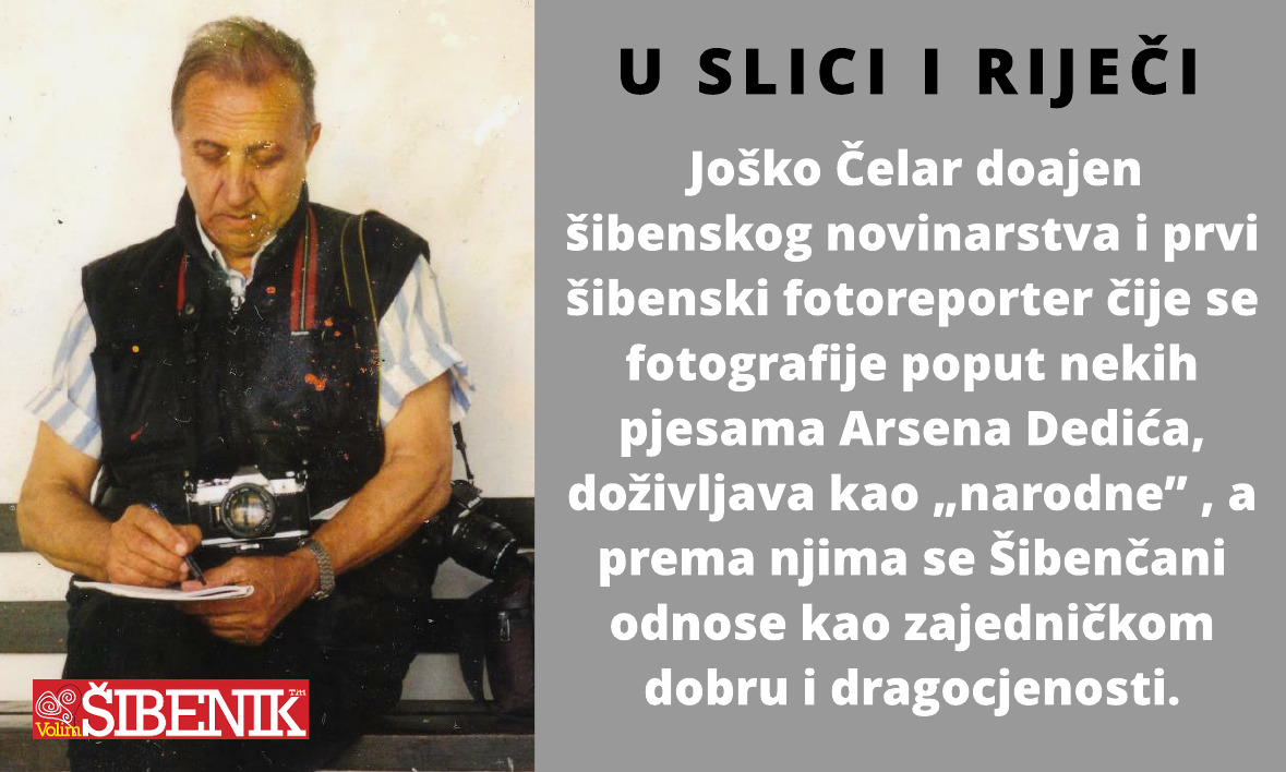 U slici i riječi: 90. obljetnica života i 60. obljetnica profesionalne novinarske karijere Joška Čelara, doajena šibenskog novinarstva i prvog šibenskog fotoreportera čije su fotografije toliko duboko ukorijenjeno u zavičajni identitet Šibenika da ih se poput nekih pjesama Arsena Dedića, doživljava kao „narodne” i prema njima se odnosi kao općem, zajedničkom dobru i dragocjenosti.