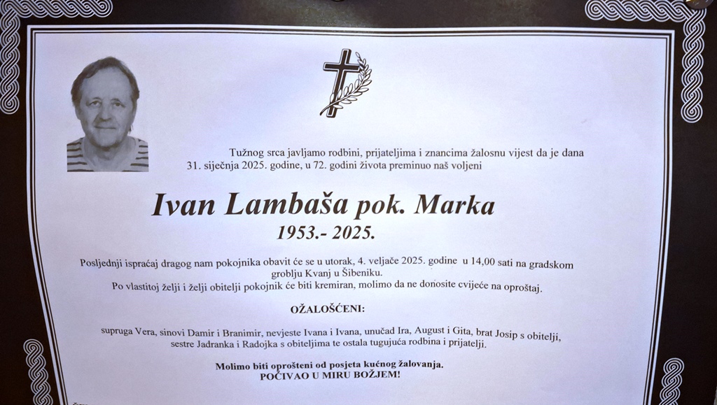 Ivan Lambaša bit će pokopan sutra, u utorak, 4. veljače na gradskom groblju Kvanj.