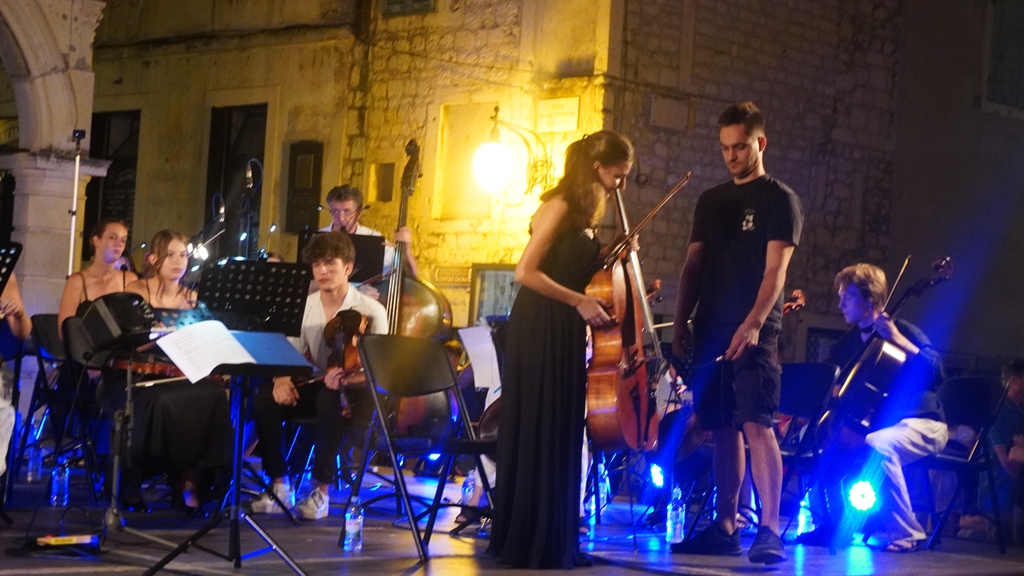 Šibenčani i gosti Šibenika uživali su sinoć na prepunom trgu između katedrale i Gradske vijećnice u Arsenovoj glazbi u izvedbi Gradskog komornog orkestra i njihovih gostiju, pod ravnanjem Jure Celića.
