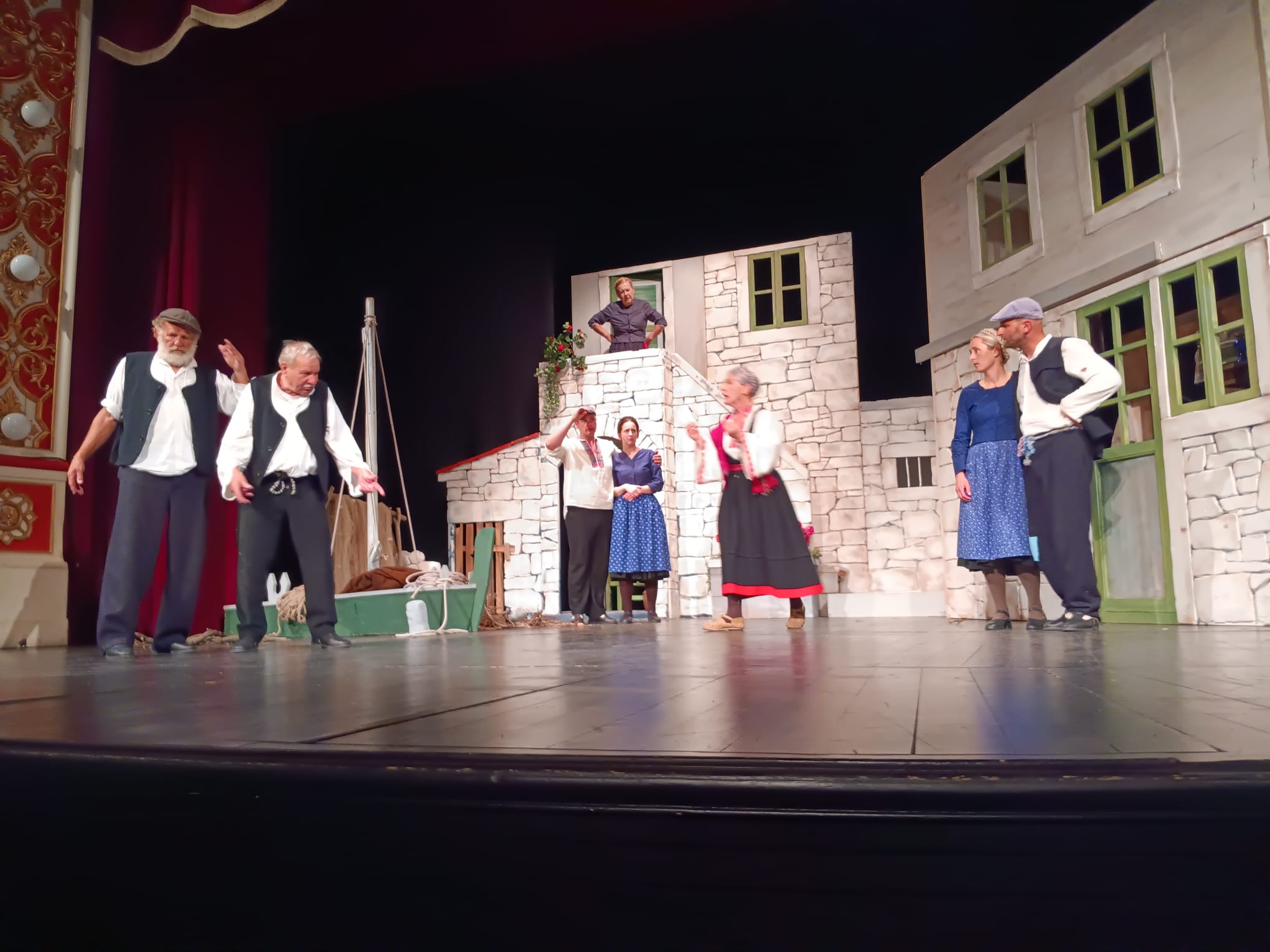 Dramski amateri iz Murtera sinoć su i šibenskom kazalištu izveli svoju hvaljenu predstavu na rivi, u organizaciji Lions kluba Šibenik. Riječ je o pravoj goldonijevskoj komediji obogaćenoj elementima lokalnog folklora i to na arhaičnom murterskom govoru punom živopisnih kletvi i metafora. Uspjeli su postići interakciju s gledateljima koji su smijehom popratili niz situacija na sceni. U predstavi se posebno ističe uspješna scenografija koja zorno dočarava arhitekturu malog mjesta uz more. Za nju je zaslužan redatelj predstave Vedranko Šikić Balara.