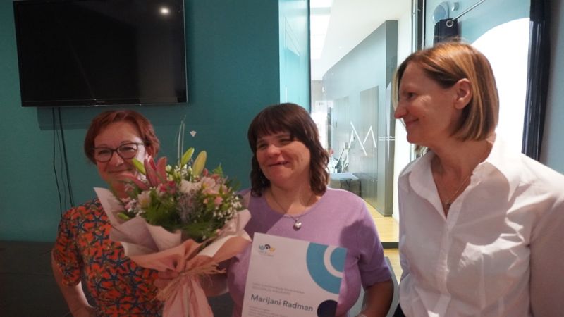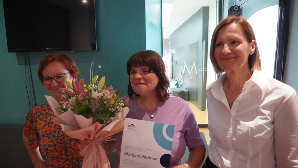 Šibenčanka Marijana Radman, korisnica usluga Centra za socijalnu inkluziju Šibenik dobitnica je Godišnje nagradu tog centra za svoje zasluge u zagovaranju prava osoba s invaliditetom, ali i za to što se uspješno uključila na tržište rada i marljivo i odgovorno radi svoj posao iako svu zaradu mora dati državi za uslugu stanovanja u stambenoj zajednici pa joj za njezine potrebe ne ostaje niti cent.