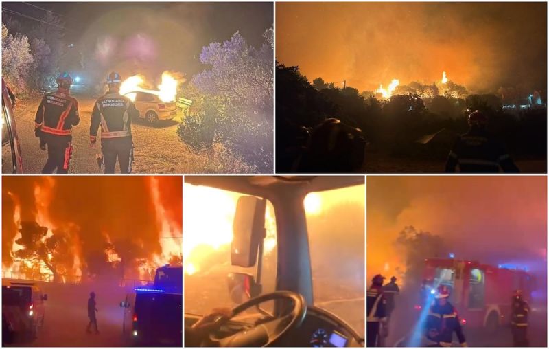 „Situacija je jako teška, pogotovo u dijelu od naselja Rupe prema Plastovu, brdovit teren, gusta vegetacija, borova šuma... Problem je vjetar, od jutra dosta jaka, na mahove i orkanska bura. Pola strana puše u jednu stranu, pa pola sata istočnjak...”, kazao je sinoć medijima Darko Dukić, županijski vatrogasni zapovjednik. Jutros je situacija bolja, ali vatra još nije pod kontrolom.