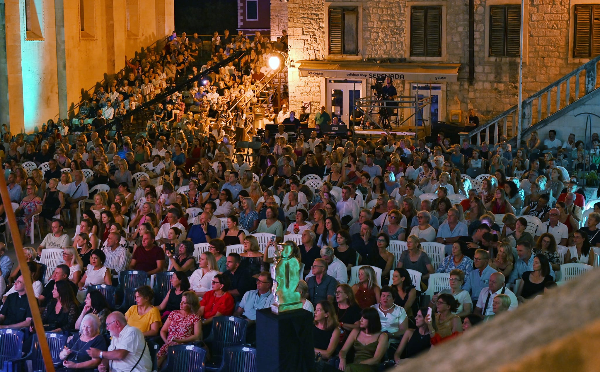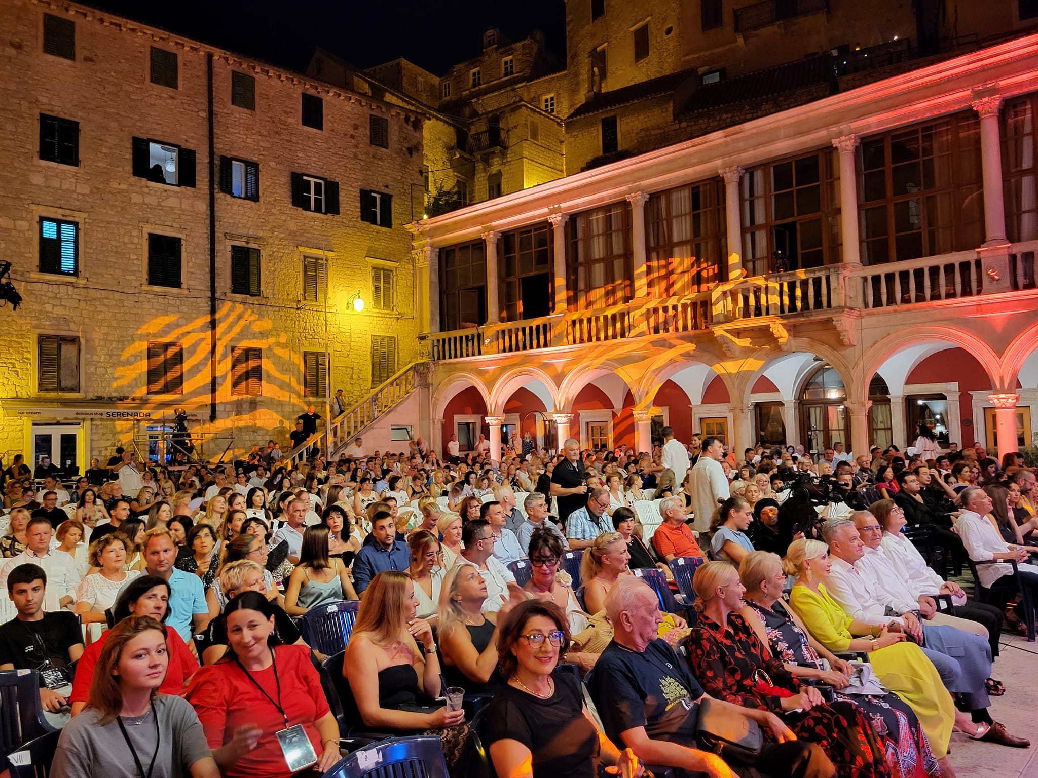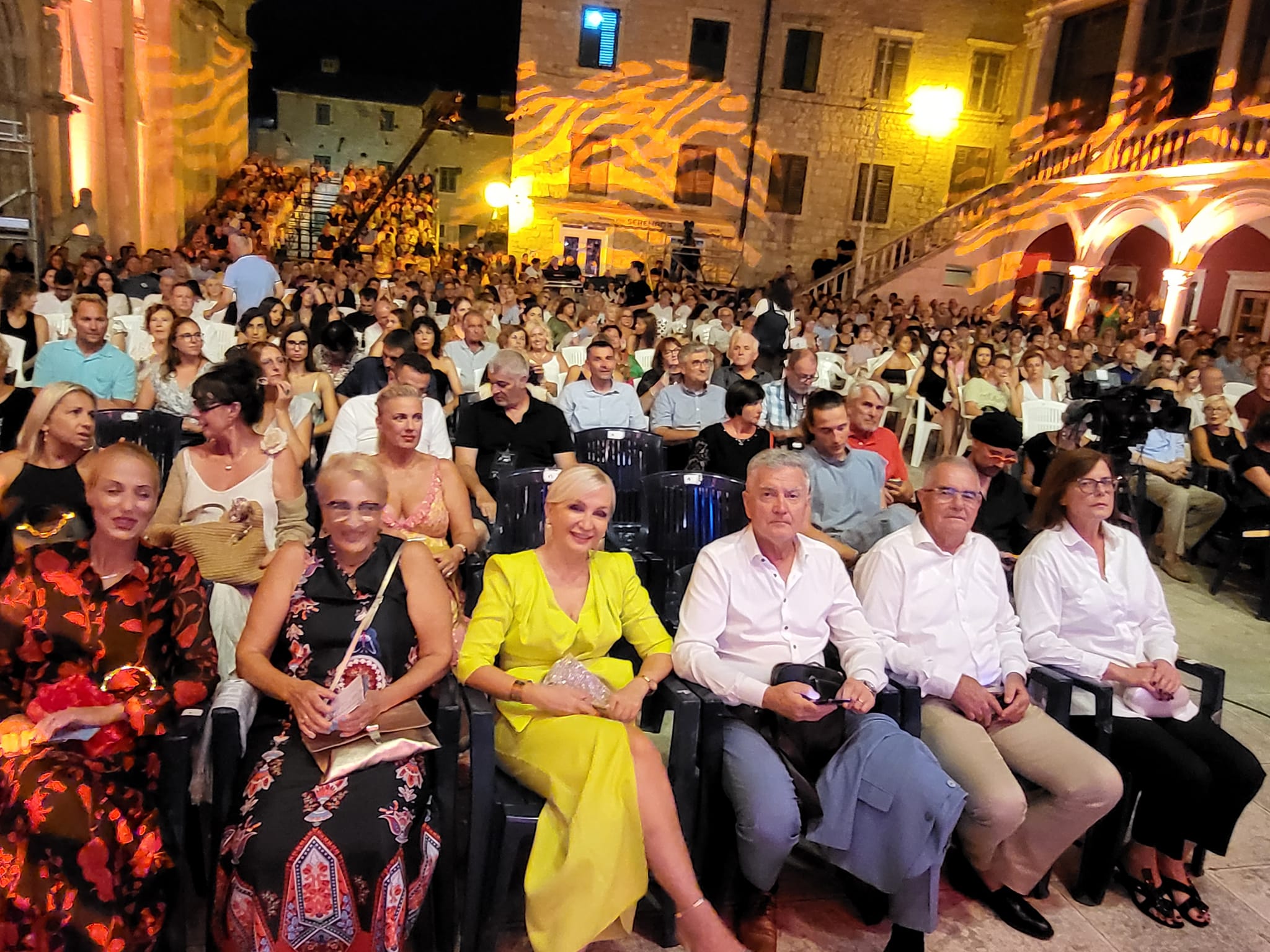 Revijalnom večeri posvećenoj Meri Cetinić počeo je sinoći 27. u Festival Dalmatinske Šansone Šibenik o na festivalskoj ljetnoj pozornici između renesansne gradske vijećnice i katedrale sv. Jakova, s tim da je prvi put do sada Gradska vijećnica bila zatvorena. Pozornica je bila malo izmijenjena u odnosu na radnije godine s bijelim klavirom i raskošnim lusterima koji su iznad visjeli. Na koncertu su bili i prvi ljudi Šibenika sa suprugama.