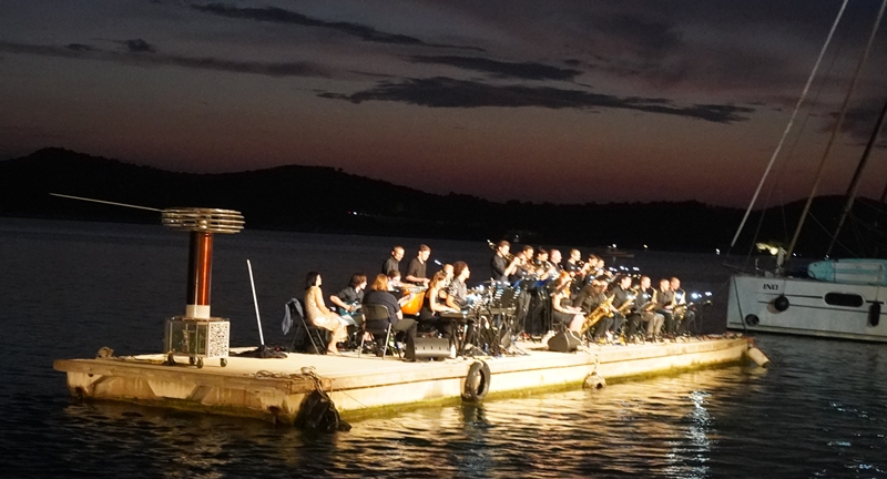 Na ponotnu uz rivu šibenski Big bend svirao je evergreene često malo više poljuljan valovima dok su oko njih kružile osvjetljene jedrilice i druge brodice.