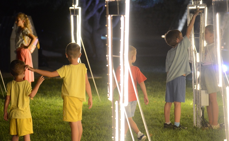 U 21.30 sati na rasporedu je DJ performans s Teslinom zavojnicom. U gradu su i, kao i prethodnih godina, postavljene instalacije, a ove godine poseban naglasak je na osvjetljenju stabala.Na pontonu je bila i Teslina ovojnica koja se okretala u ritmu glazbe. Na terasi hotela Krka plesale su članice Udruge Sjene što se prenosilo na video zidu.
