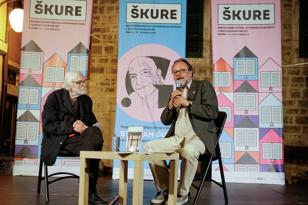 Bora Ćosić, hrvatski i srpski književnik objavio je oko 60 knjiga u Hrvatskoj, Srbiji i Njemačkoj, gdje živi posljednjih tridesetak godina. U svojoj 93. godini i dalje svakodnevno piše. Nagradu „ Stjepan Gulin“ , sponzor koje je Grad Šibenik, ovogodišnjem je laureatu uručila Olja Runjić, umjetnička direktorica ŠKURA.