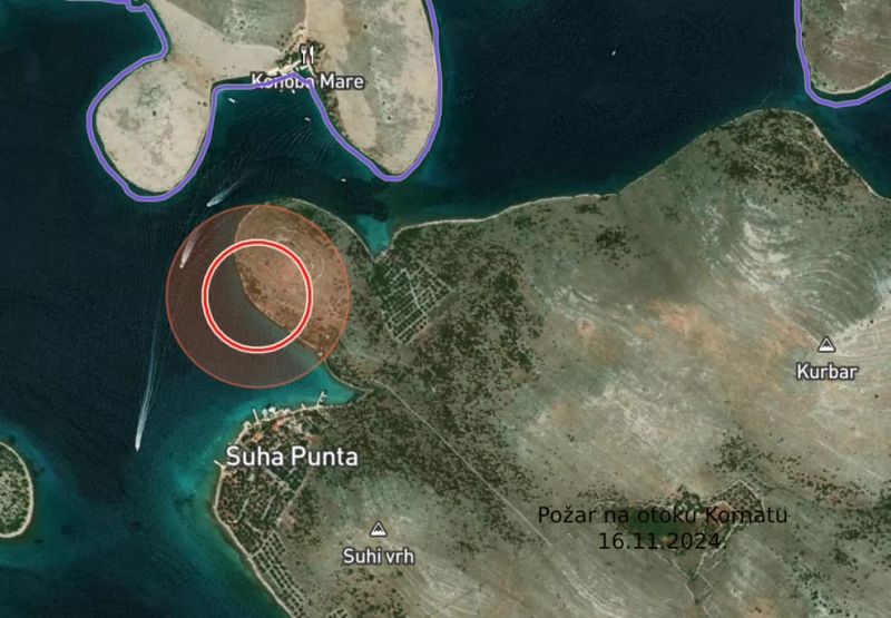 Na slici: Detekcija manjeg požara na Otoku Kornatu ua rtu Suha punta.