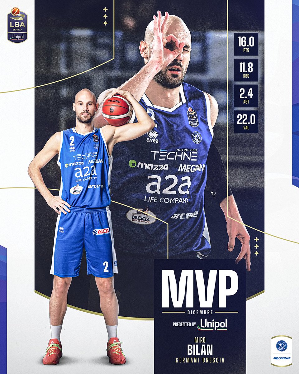 Hrvatski košarkaš, Šibenčanin Miro Bilan proglašen je najboljim igračem prosinca u talijanskoj Serie A. To mu je već druga takva nagrada ove sezone, nakon što ju je zavrijedio i u listopadu. Bilan je pomogao svojoj Brescii da u prosincu ostvari pet pobjeda iz pet utakmica, a četiri je puta uvršten u najbolju petorku kola.