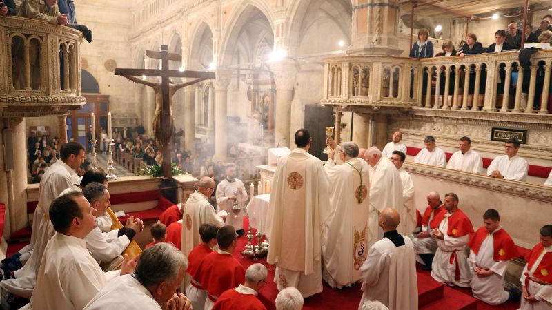 Misu večere Gospodnje, spomen na posljednju Isusovu večeru, sinoć je u katedrali svetog Jakova u predvodio šibenski biskup Tomislav Rogić zajedno s umirovljenim biskupom Antom Ivasom, katedralnim župnikom don Krešimirom Matešom, župnim vikarom don Šimom Pleadinom, upraviteljem samostana svetog Lovre fra Josipom Klarićem i župnikom Žirija i Kaprija don Olegom Petrovićem. Nakon homilije biskup je oprao noge dvanaestorici odraslih muškaraca angažiranih na trajnom euharistijskom klanjanju, a po završetku pričesti prenio je posvećene hostije na pokrajnji oltar šibenske katedrale, te se zadržao sa vjernicima u meditaciji i molitvi.