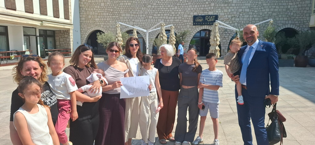 Bivšeg župana Jelića pred zgradom Županije jutros dočekala obitelj s natpisom "Čaća se vraća"