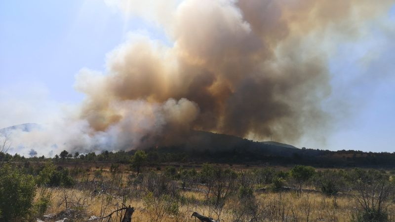 Šumski požar izbio je danas poslijepodne u Tarićima, u Donjem polju. „Dojava o požaru na otvorenom prostoru zaprimljena je u 17.50 sati. Požar trenutno gasi 24 vatrogasca s devet vozila", izvijestili su nas iz Županijskog 112 centra. Širenju vatri pridonosi dosta jak sjeverozapadni vjetar.
