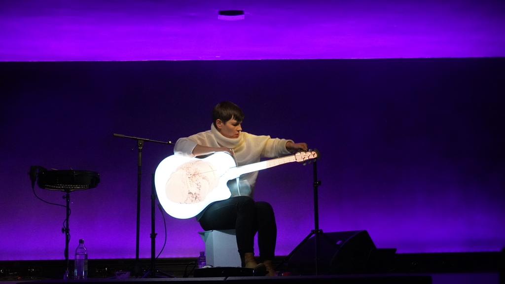 Njezina elektro - akustična gitara uglavnom je bila jedini osvijetljeni predmet na pozornici, a u ritmu glazbe koju je svirala izmjenjivali su se na tijelu gitare slike, boje i poneke riječi. Između svojih skladbi nenametljivo je umetala pričice o svojim iskustvima i doživljaju Hrvatske. „Ovo je bilo nestvarno” , „bio je to užitak za oči i uši”, „nešto posve novo i moderno i vrlo atraktivno” - bili su neki od komentara koje smo nakon koncertu čuli u publici.