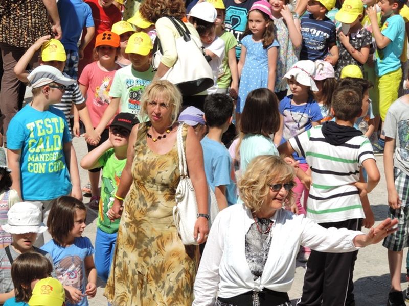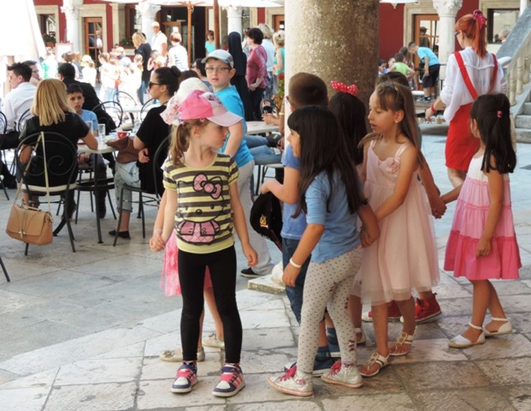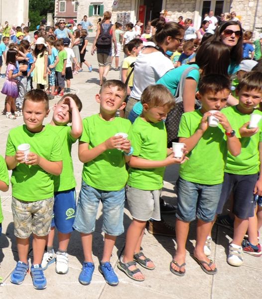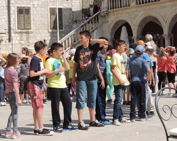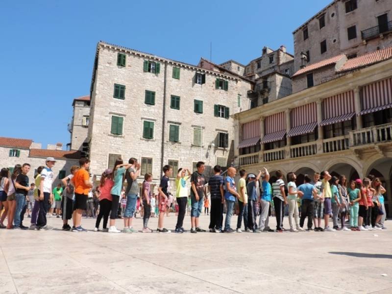 Ususret 55. Međunarodnom dječjem festivalu djeca iz šibenskih vrtića i osnovnih škola snimila su danas na trgu između Vijećnice i katedrale Milenijsku fotografiju. Sudjelovalo je tristotinjak mališana. Djeca su pozirala autoru projekta Milenijska fotografije Šimi Strikomanu koji ih je posložio u formu broja 55 i u oblik srce u kojem piše MDF.