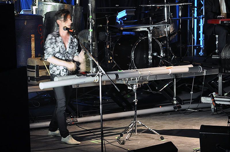Njemački industrial sastav neizgovorljiva imena Einstürzende Neubauten (otprilike Ajnštrucende Nojbauten) sinoć je bilo najpoznatije ime na popisu bendova koji su nastupali drugu večer SuperUho festivala. Isto tako, nastup im je bio najbolje popraćen, tribine tvrđave sv. Mihovila poprilično napunjene, iako neusporedivo s gužvom na Flogging Molly-u večer prije. Neusporediv je bio i nastup ta dva headlinera ali i cjelokupna atmosfera prve dvije večeri festivala. Za razliku od buke, plesa, poga, bogate rasvjete i brzih ritmova prve večeri, sinoćnji program, a pogotovo nastup kultnog njemačkog benda iz 80-ih, bio je totalna suprotnost. Berlinjani predvođeni pomalo jezovitim frontmenom Blixom Bergledom, popraćeni minimalnom rasvjetom, izveli su svoj nastup koji je dosta naginjao konceptualnom art performansu. Glazba koja je iz zvučnika dopirala do publike može se okarakterizirati kao mješavina Nick Cave-a i Rammstein-a, uz neobične zvukove koji su se stvarali "sviranjem" po gumama, cijevima, federima, kotlima i drugim rekvizitima koji su zauzeli veliku binu tvrđave. Pridodavši tome vokal Blixe koji je u trenutke ispuštao zvukove koji su zvučali kao nekakva vanzemaljska bića ili krikove poput samog grofa Drakule, cijelom koncertu dali su dosta jezovit ugođaj. Publika mirna, zainteresirana, u trenutcima u transu odslušala je od početka do kraja zanimljiv program s glavne bine i dobila zasluženi bis.