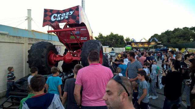 Vožnja motora na jedno kolo, bez ruku, okretanje automobila na bok ili prolazak među stolicama, a da nijedna dođe u kontakt s automobilom. Vatra i uništavanje manjeg automobila pod gumama čudovišnog stroja samo su dio programa koji su kaskaderi Crazy cars showa izveli jučer, a što će ponoviti već danas.