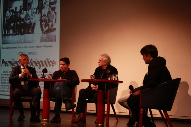U razgovoru se iz publike uključio i Mate Gulin koji je, na njemu svojstven način ustvrdio kako je u mirovini dobio šansu glumiti puno uloga jer je jedna od rijetkih starih glumaca, a prigovorio je šibenskom teatru da su njega Peru Mioča i još neke prerano umirovili.