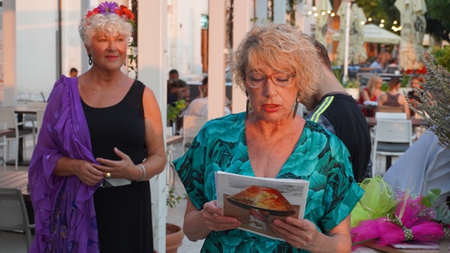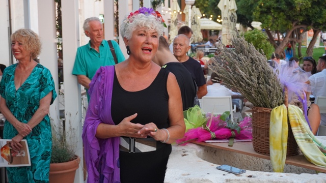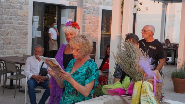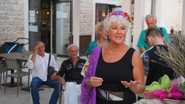 "Sretna sam što vidim ova vaša sretna lica večeras jer čovjek se osjeća da više vrijedi kada ima toliko prijatelja. Ja sam u svojim slikama izrazila svoje osjećaje i svoje raspoloženje inspirirana prirodom, ako samo dio toga osjetite gledajući ih bit će mi drago", kazala je.