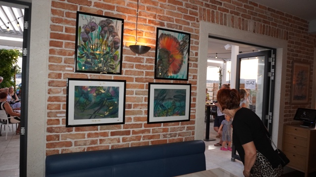Duška Zaninović je pod nazivom "Sve moje inspiracije"izložila tridesetak svojih radova u različitim tehnikama od tuša i ulja na platnu do kombiniranih tehnika, a nastali su od 1978. godine do danas. Na otvaranju, na terasi tog restorana okupili su se njezini prijatelji i štovatelji likovne umjetnosti.