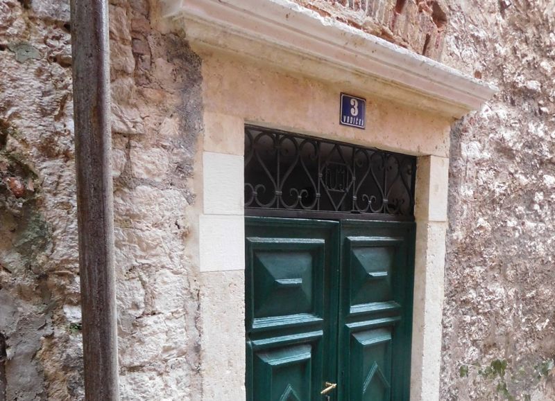 “Portal je bio dosta ošđtećen na lijevom te manje na desnom dovratniku. Ta su oštećenja izazvana korozijom ukrasne rešetke u vrhu portala. Radovi su obuhvatili čišćenje i obnovu kamenih pragova i nadvratne profilacije te restauraciju ukrasne željezne rešetke. Radove je izvela također radionica TRAVEJ d.o.o. iz Zadra. Drvene vratnice unutar ovog portala predstavljaju primjer vrsnog baroka (cca 18. st.) koji se očitava u sačuvanim okovima, ali i iznimno naglašenim profilima koji obrubljuju kasete krila. Vratnice su bile teško oštećene vlagom, osobito u donjoj zoni. Kompletnu restauraciju izveo je Atelier Kostov odnosno restauratorica Anna Kostov iz Zadra”, kaže Ivo Šprljan, voditelj tog projekta.