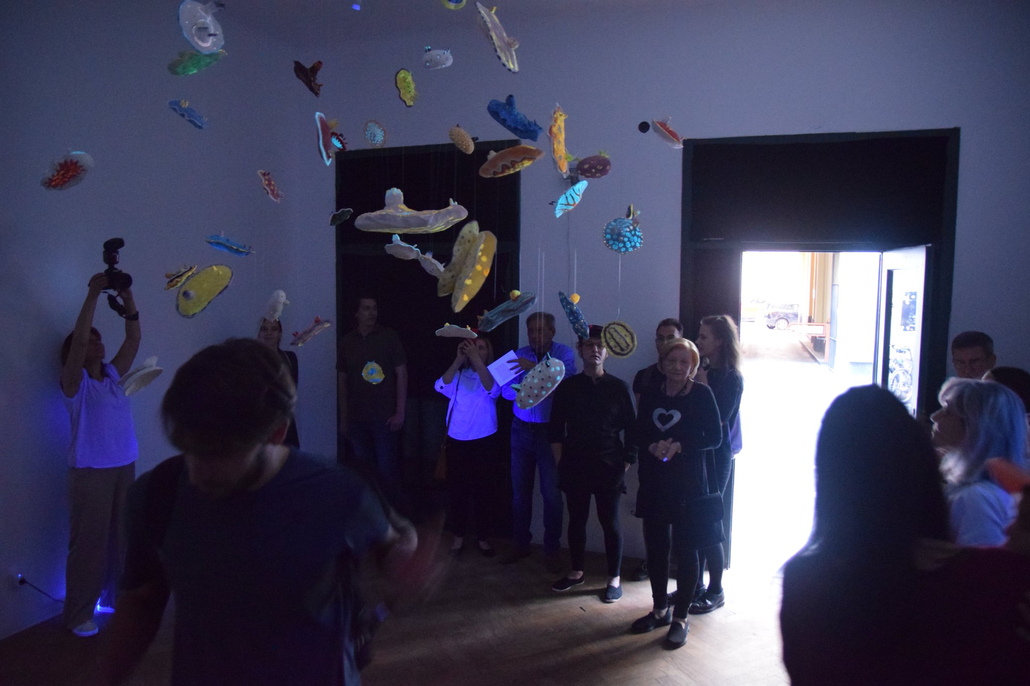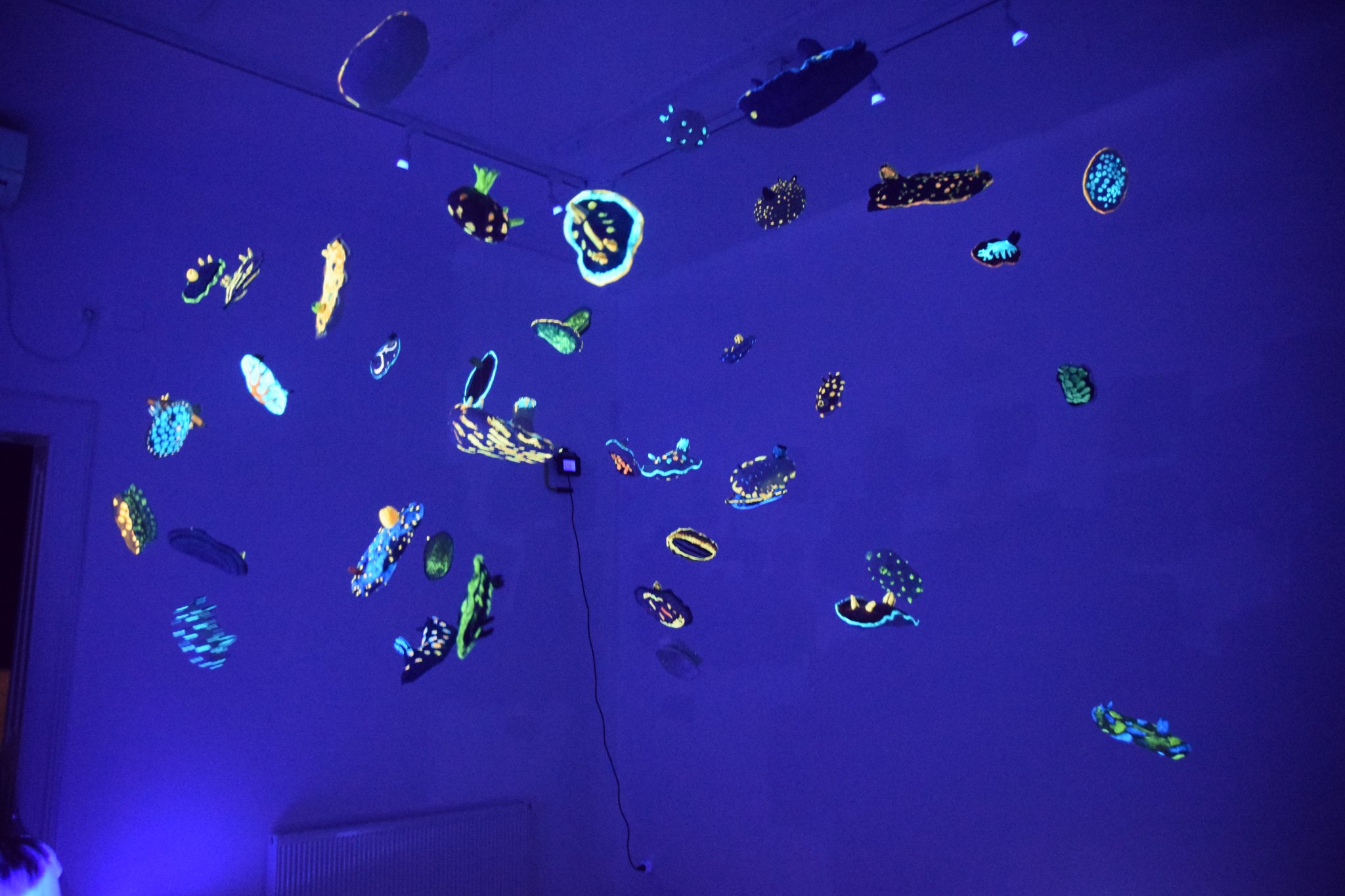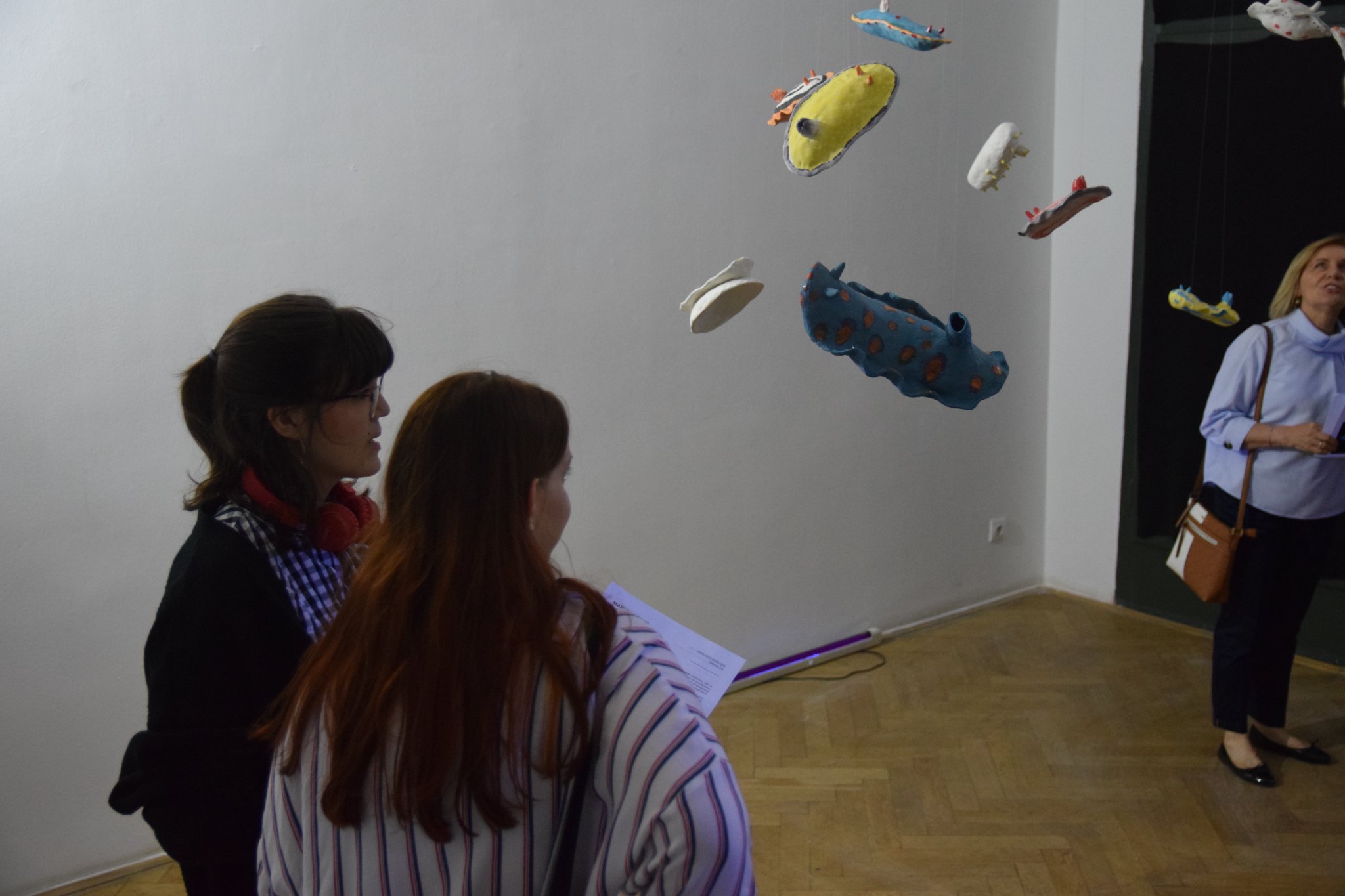 “Neobični oblici koje pronalazimo u prirodi dugo su vremena inspiracija kiparici Manueli Pauk. Ovoga puta fascinirala se morskom faunom, neobičnim i živopisnim morskim puževima čije su intenzivne, fluorescentne boje i začudni uzorci jedno od zanimljivijih djela prirode. Izložba će pokazati kiparski ambijent koji se sastoji od pedesetak fluorescentnih skulptura morskih puževa. Izložba posjetitelju dopušta sagledavanje ambijenta pod svjetlom i u mraku. Tama u kojoj lebde ovi puževi podsjeća na evolucijske prapočetke života iz kojih proizlazi raznolikost živih bića kao i svi njihovi načine prilagodbe okolini. Ovaj ambijent podsjeća na bogatstvo i šarolikost najveće predstave na zemlji – razvoja života”, piše tportal o toj zanimljivoj izložbi.