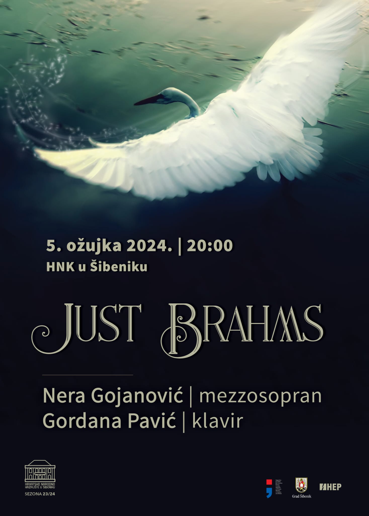 „Just Brahms” naziv je koncerta na kojem će večeras, 5. ožujka u foajeu šibenskog kazališta nastupiti šibenska mezzosopranistica Nera Gojanović i pijanistica Gordana Pavić Na programu će se naći djela Johannesa Brahmsa, njemačkog skladatelja i pijaniste (1833. – 1897.)