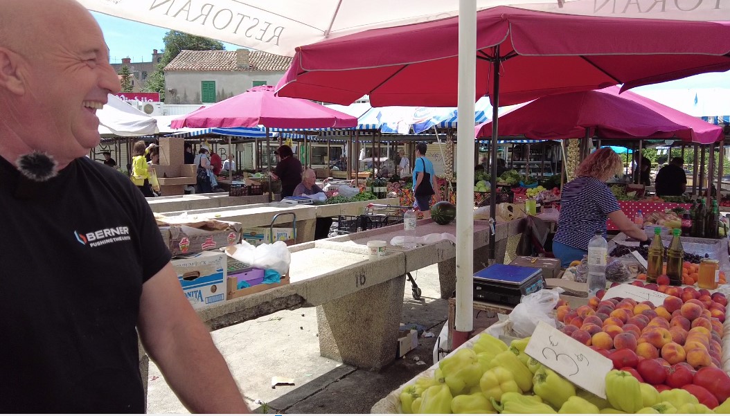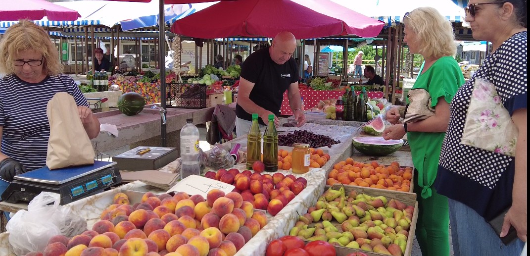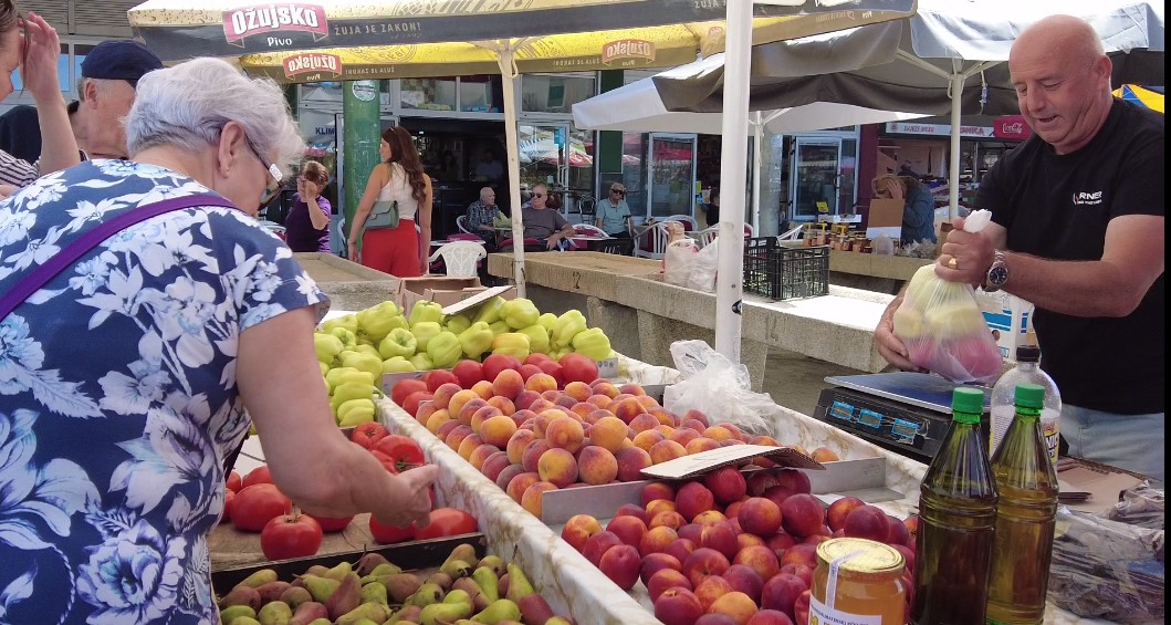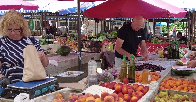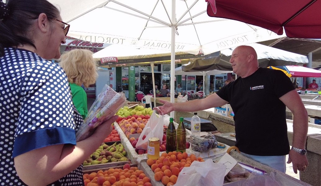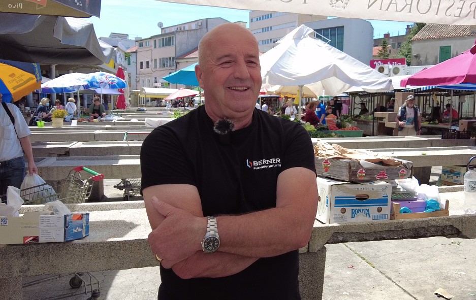 „Tu smo 25 godina. Došli smo iz Bosne zbog rata. Ja sam prije toga radio u željezari Zenica. Taj nesretni rat koji nam je sve oduzeo doveo nas je u Šibenik. Dugo vremena smo bili podstanari u Zablaću, a sada imamo svoju kuću u Ražinama. Prodajem sezonsko voće i povrće s imenom i prezimenom, dakle samo domaće ili iz regije, ali točno znamo odakle dolazi i tko je uzgajivač. Ne radimo zimi nego od Uskrsa kada počinje ponuda domaćih proizvoda.