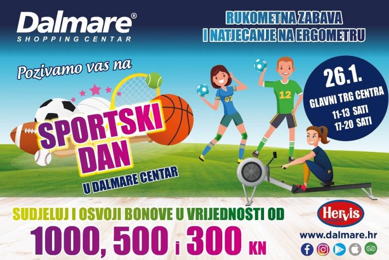 U tijeku je svjetsko prvenstvo i Hrvatskom vlada prava rukometna groznica, a Dalmare centar je veliki fan naših kauboja. Kako biste i vi pokazali natjecateljski duh, cijelu subotu u shopping centru Dalmare će se odvijati sportske aktivnosti i natjecanja uz prigode za osvajanje vrijednih nagrada. Sponzor prve nagrade od 1000 kn je HERVIS trgovina.