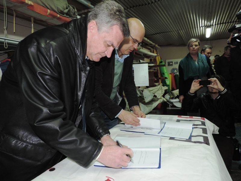 Marin Paić, predsjednik jedriličarskog kluba „Val“ i gradonačelnik Šibenika Željko Burić, potpisali su danas Ugovor o međusobnim pravima i obvezama o upravljanjem javnom sportskom građevinom, zahvaljujući kojem će jedriličarski klub „Val“ konačno moći izgraditi objekt primjeren svojim potrebama i sportskoj reputaciji.