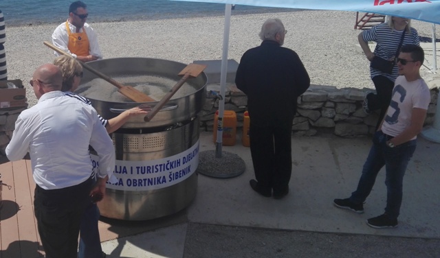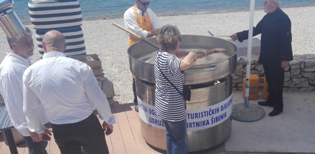 Peta Biciklijada završila je slavljem na gradskoj plaži Banj gdje su šibenski ugostitelji pripremali rižoto od plodova mora u svojoj sve popularnijoj mega tavi, a ni podnevno sunce koje je grijalo 'iz sve snage' nije omelo kužinavanje uz obalu mora s najljepšim pogledom na Krešimirov grad.