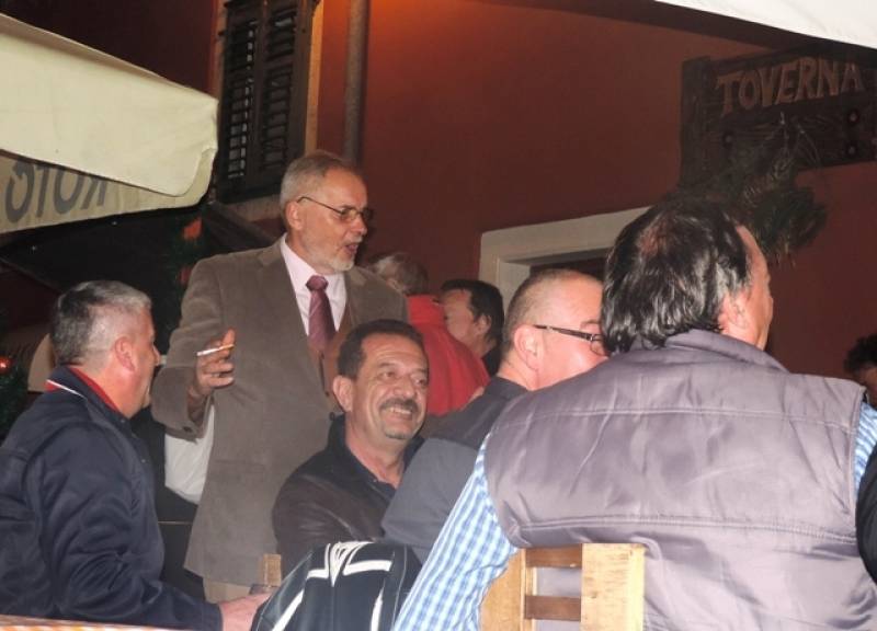 Zbog tpga je otvorena malo drukčija konoba, a na sinoćnjoj fešti bilo je svega što čini tradicionalnu konobu – domaće spize i vina, domaće glazbe za koju su se pobrinuli Vojo Marković, Tonči Lučev i Nikica Širinić te tekstopisac i pjesnik Dinko Škevin, a dio folklora svakako je bila i jedna od šibenskih oriđinala Branka Hajka koja je sve vrijeme agitirala za Rudu. Kao predsjednika. Vrhunac je bio kada se u prolazu Ulicom Stjepana Radića uz trubljenje u znak pozdrava Ivanu Rudi zaustavio novi autobus šibenskog Autotransporta u kojem je Rude stečajni upravitelj i čiji su ga radnici, uz ostale, potaknuli na kandidaturu za predsjednika.