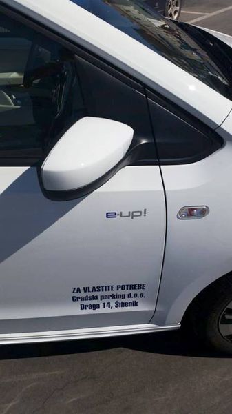 Tvrtka Gradski parking d.o.o. je među prvima u Šibeniku postala ponosni vlasnik potpuno novog električnog automobila E-UP! Ukupne je vrijednosti 150 tisuća kuna, od kojih je 60 tisuća kuna sufinancirano sredstvima Fonda za zaštitu okoliša kroz projekt poticanja nabave električnih i hibridnih vozila.