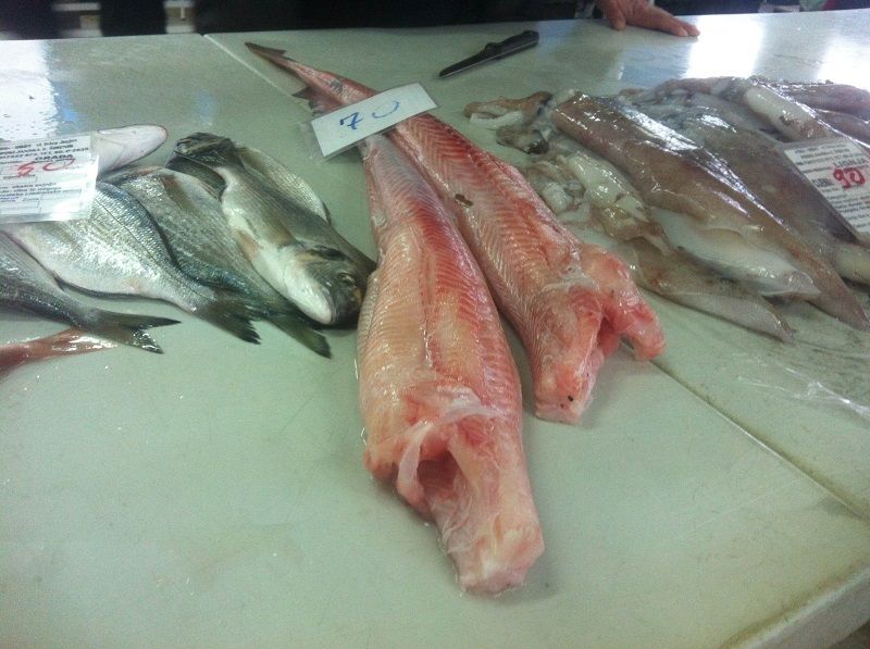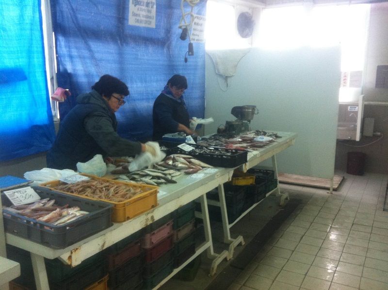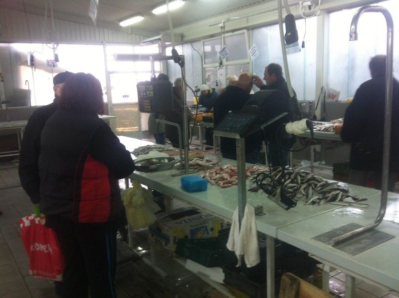 Štandova više praznih nego bogatih ponudom ribe, a i Šibenčani djeluju kao da su samo svratili s vanjskog dijela tržnice da se ugriju, pa kao da će na jedna vrata ući, a na druga izaći. Nešto ribe ima, idemo redom. Kod dugogodišnje prodavačice Marije iz Šibenika gavuna po 15, 20 kuna ima, trilje su 30, maleni arbuni 30 kuna. Lignje, e sad ovisi jesu "sišle" s koče, ako jesu onda za kilogram 130 kuna treba izdvojiti. Nađe ih se i za 90. Orade po 60. Ima kozica i mola.