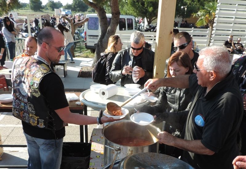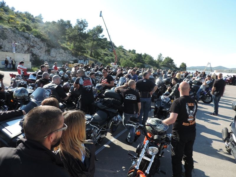 Nakon fotografiranja na Martinskoj, bajkeri su u velikom defileu prošli kroz Šibenik i zaputili se na plažu Rezalište u Brodarici gdje je za njih u bifeu No stress priređen domjenak s besplatnim grahom s kobasicama.