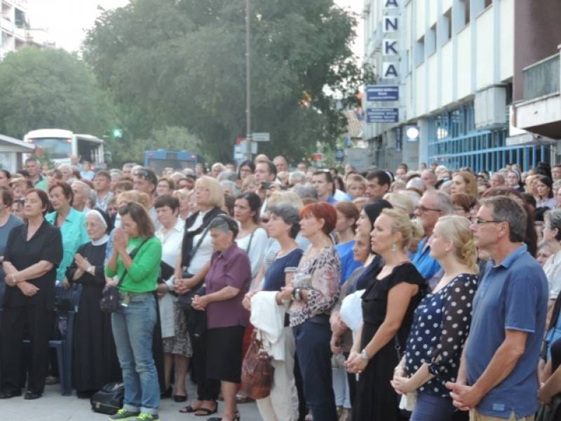 Trg između crkve Gospe van grada i FINA –e bio je večeras prepun vjernika. Misno slavlje u povodu blagdana Male gospe predvodio je šibenski biskup Tomislav Rogić. Vjernici iz Šibenika se na današnji blagdan, tradicionalno okupljaju na misi u toj gospinoj crkvi