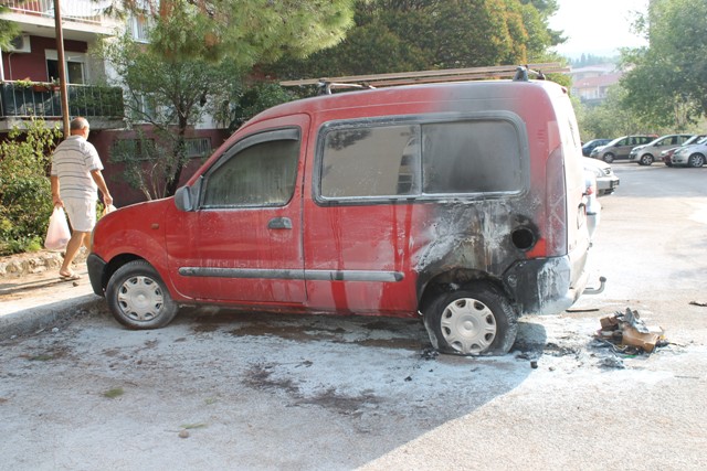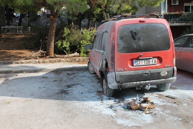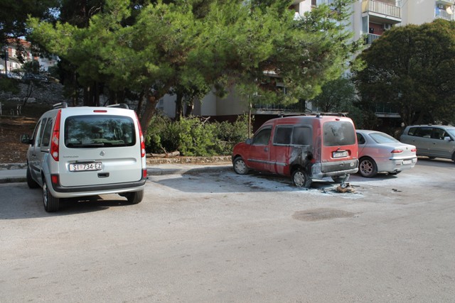 Osobni automobil marke Renault Kangoo izgorio je sredinom noći u četvrti Vidici u Šibeniku. Automobil šibenskih registracija u vlasništvu 42-godišnjaka planuo je oko jedan sat, a eksplozija koja se mogla čuti uzbunila je stanovnike te četvrti.